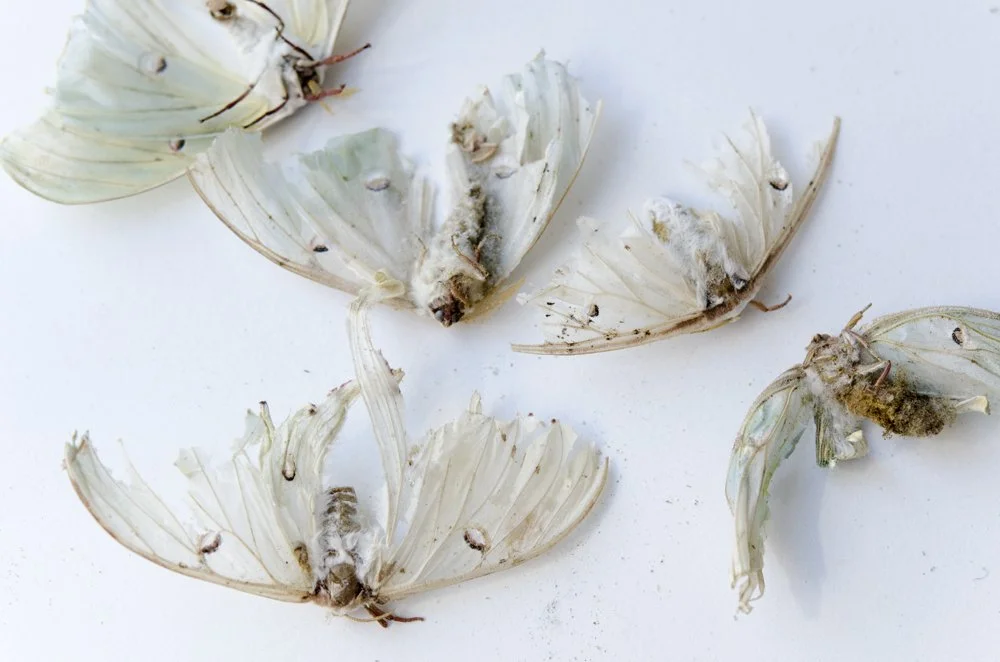 I use everything at hand– natural materials, sound, language, image-making, built structures– to create opportunities for humans to feel what we often avoid, including grief, awe, and complexity. Much of my work centers around embodiment because the body cannot avoid its griefs: we ache, we fracture, we de- and re- form. Sound creates a layer of meaning that enters the body directly, and holds all other elements in its unifying force. Using an often spare aesthetic and materials that have rich historical significance allows me to address climate, colonization, and violence through materiality. Live moths, dead foxes, bone china, marble, historical texts, bone, gold, and the sounds of extinct animals are a few examples of materials that layer historical significance into the work. Natural processes of decay and transformation are made visible, creating opportunities to confront loss and mortality in our long moment of crisis.